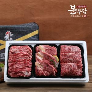 [안동한우 본우담] 1+등급이상 한우 구이정육 선물세트 3호 1.2kg (꽃등심400g + 안심400g + 차돌박이400g) M