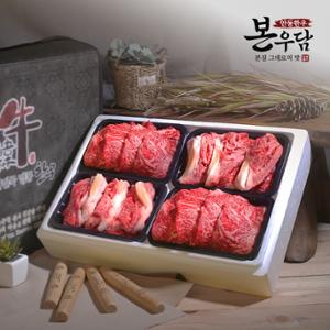 [안동한우 본우담] 1+등급이상 한우 모둠 선물세트 2호 1.6kg (꽃등심400g + 안심400g + 국거리400g + 불고기400g) M