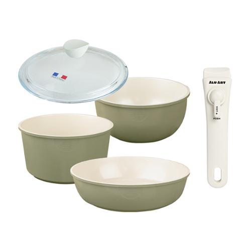 (백화점판매상품) [알루아트] 매직그립 매트그린 5P세트_인덕션겸용 (냄비18+웍20+팬26+유리뚜껑18+멀티핸들) MA5P-26
