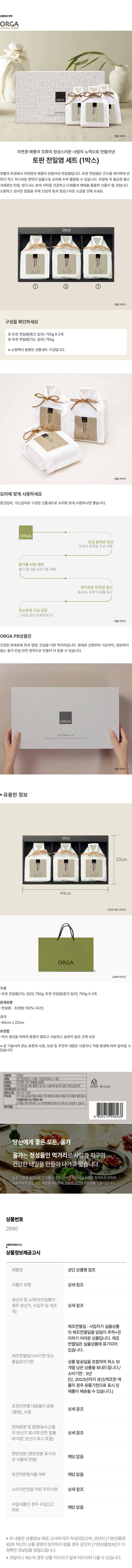 (백화점판매상품) [ORGA] 토판 천일염 세트_M