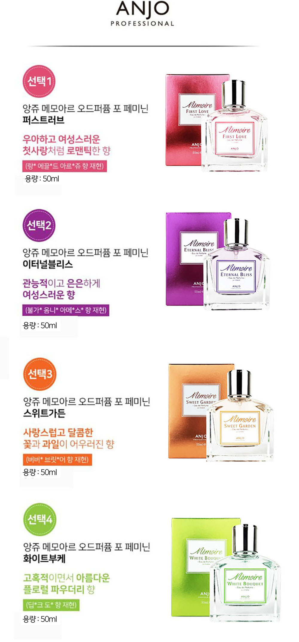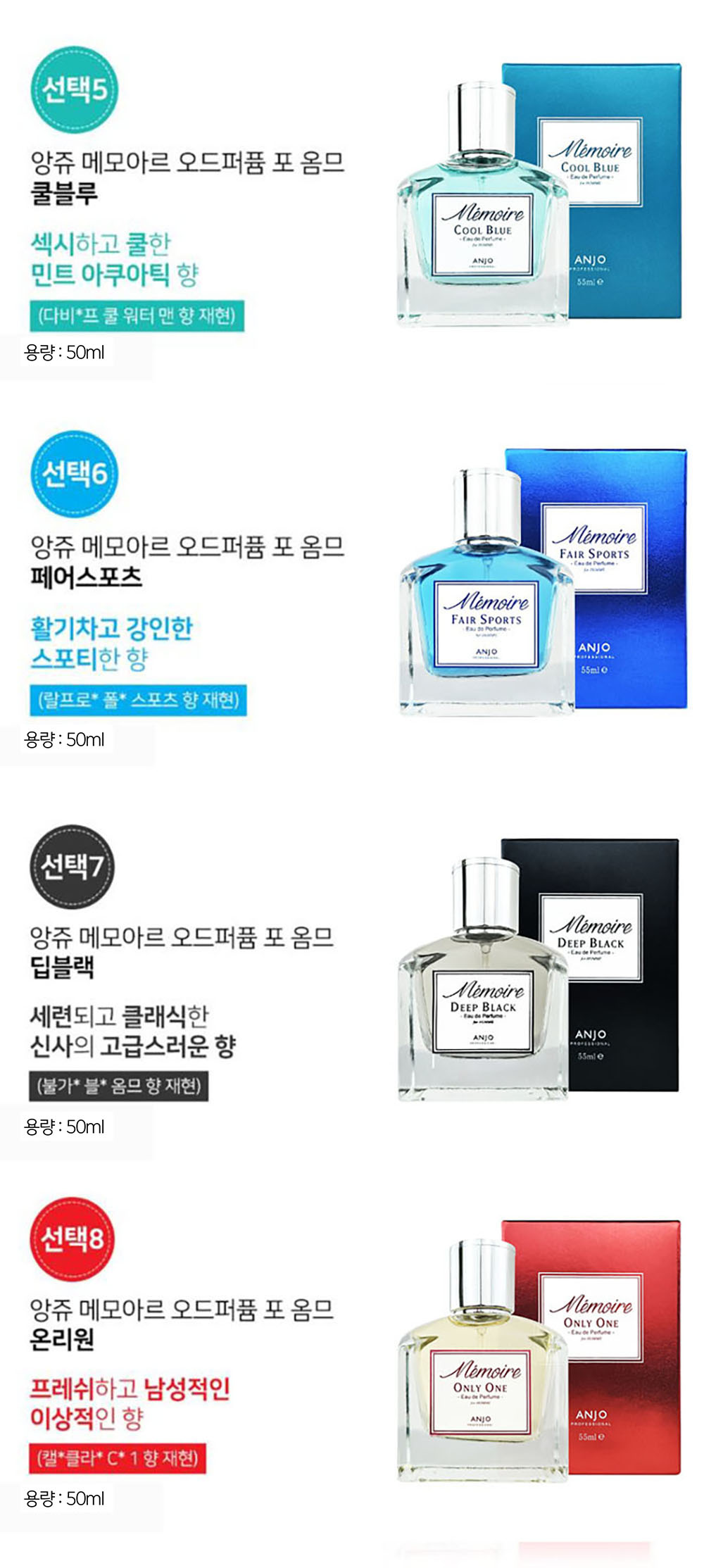 [앙쥬] 명품향기 NEW 메모아르 오데퍼퓸 8종 (남성/여성향수)_옵션 택1