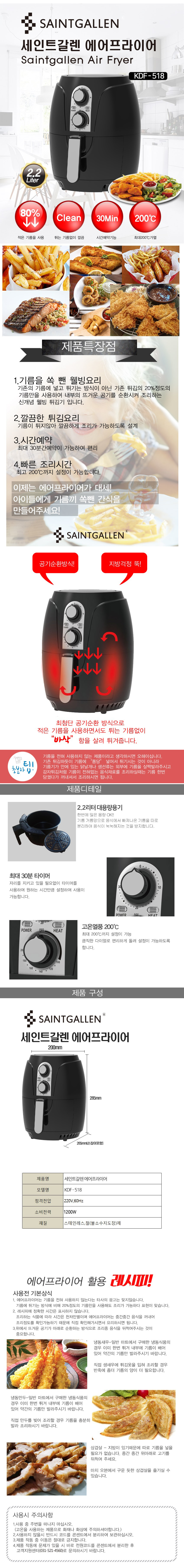 세인트갈렌 2.2L 에어프라이어 KDF-518