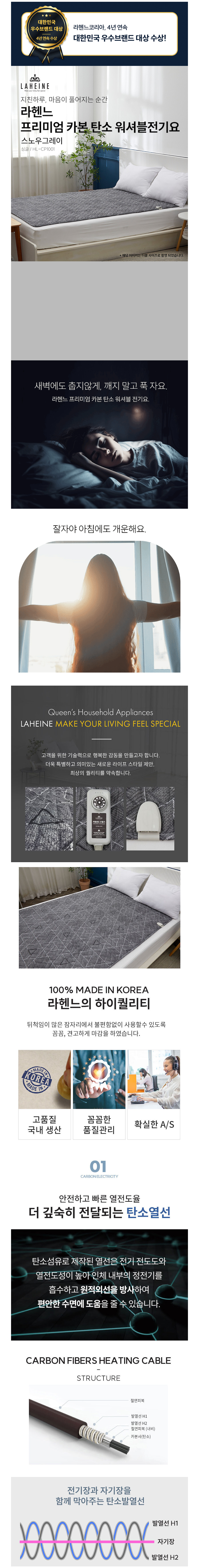 [라헨느] 스노우그레이 탄소열선 카본매트 워셔블 양면 전기요 싱글