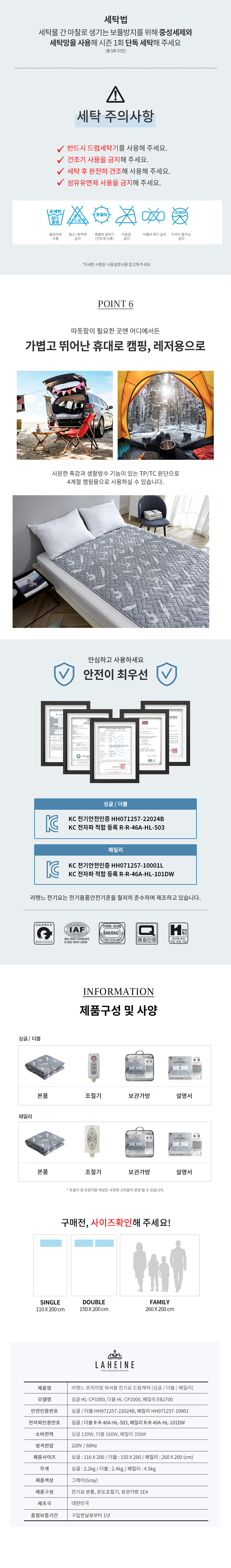 [라헨느] 드림캐쳐 워셔블 안심세탁 양면 전기요_사이즈 택1