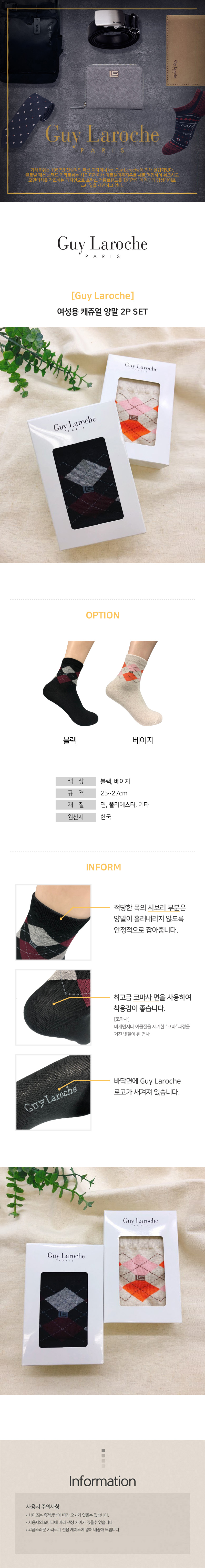 기라로쉬 여성용 캐쥬얼(단목) 양말 2P SET GL-WCA-2P