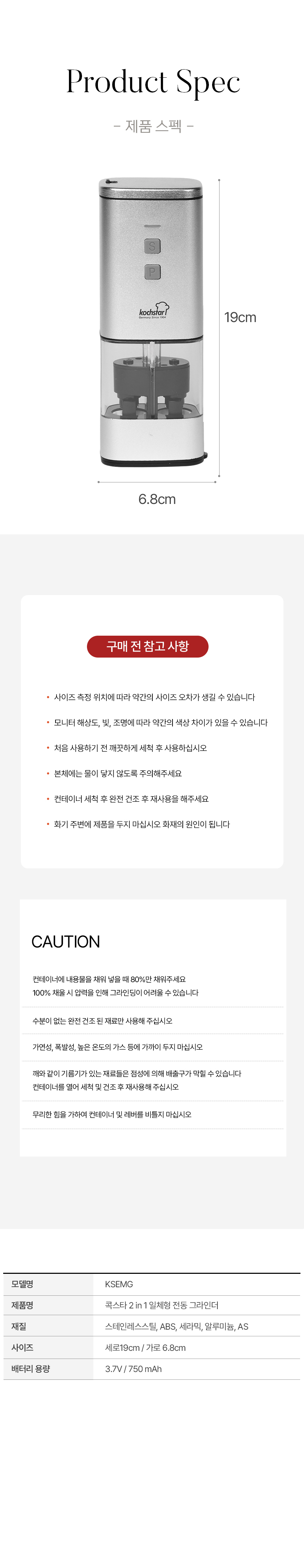 [콕스타] 일체형 후추 그라인더 KSEMG