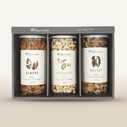 [더 오가닉센터] 선물용 생 견과 3종세트 (생아몬드.생캐슈넛.생호두 각 1통)