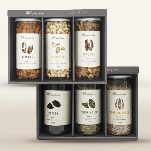 [더 오가닉센터] 선물용 견과 6종 세트(생아몬드, 생호두, 생캐슈넛, 생호박씨, 생해바라기씨, 건포도 각 1통)