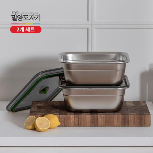 밀양도자기 스텐사각 밀폐 밧드 2종 (4PCS)