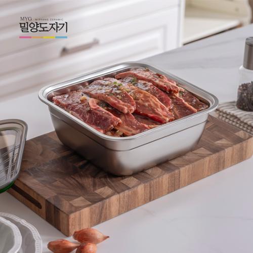 밀양도자기 스텐사각 밀폐 밧드 1종 (2PCS) 5.6L