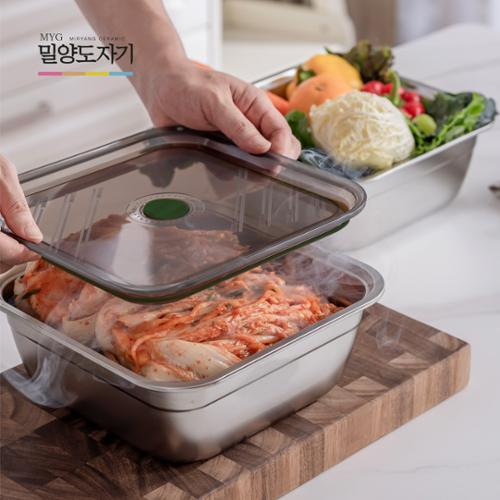 밀양도자기 스텐사각 밀폐 밧드 1종 (2PCS) 4.2L