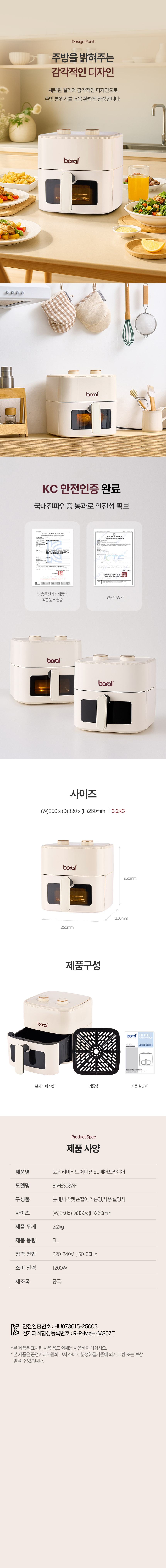 [독일 보랄] 리미티드 에디션 5L 보이는 에어프라이어 BR-E808AF