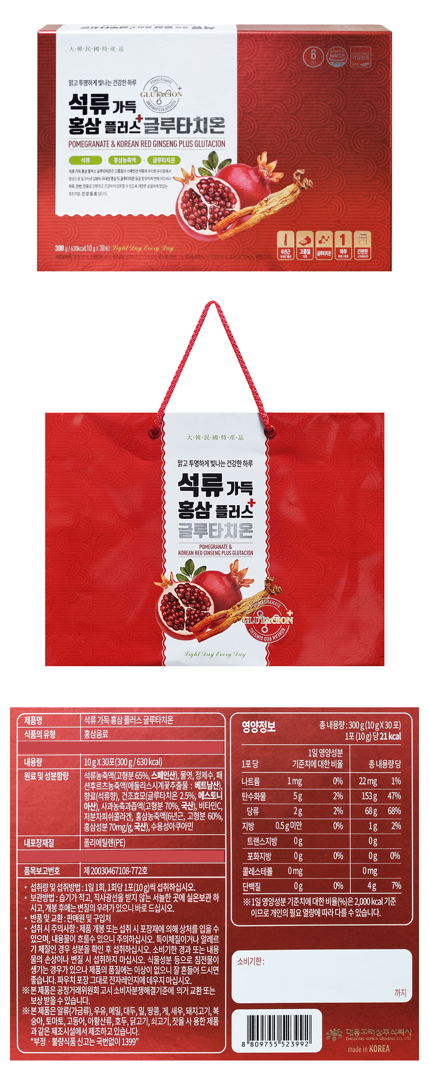 [대동고려삼] 석류가득 홍삼플러스 글루타치온 10g x 30포 + 쇼핑백