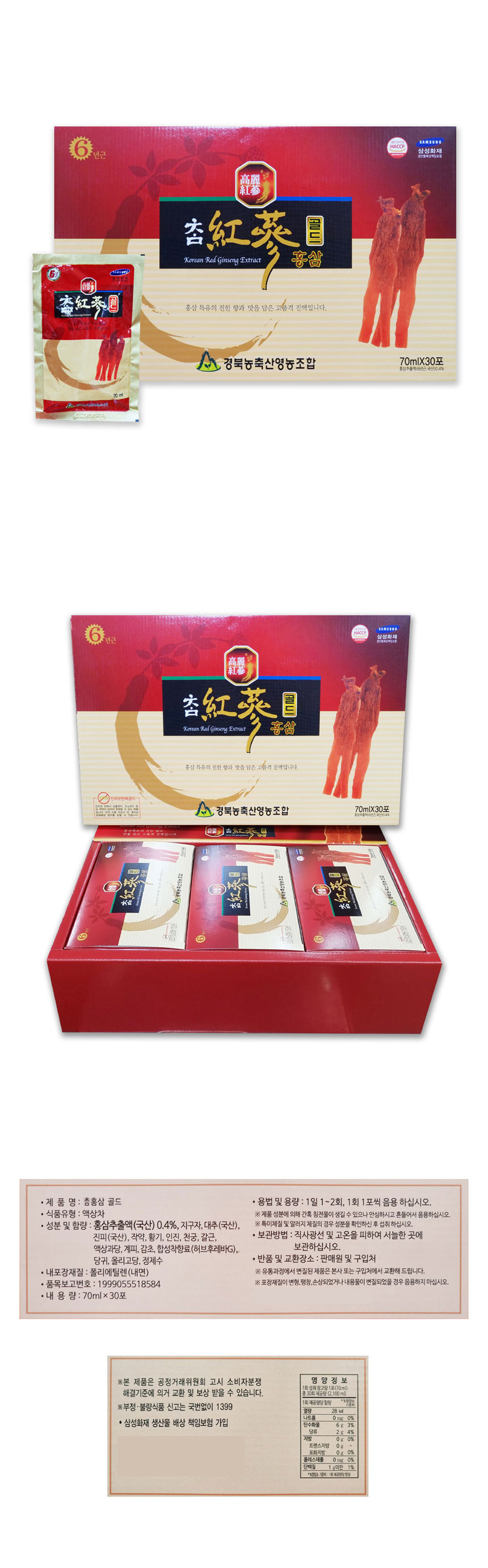 [경북농축산영농조합] 참홍삼골드 70ml x 30포 + 쇼핑백