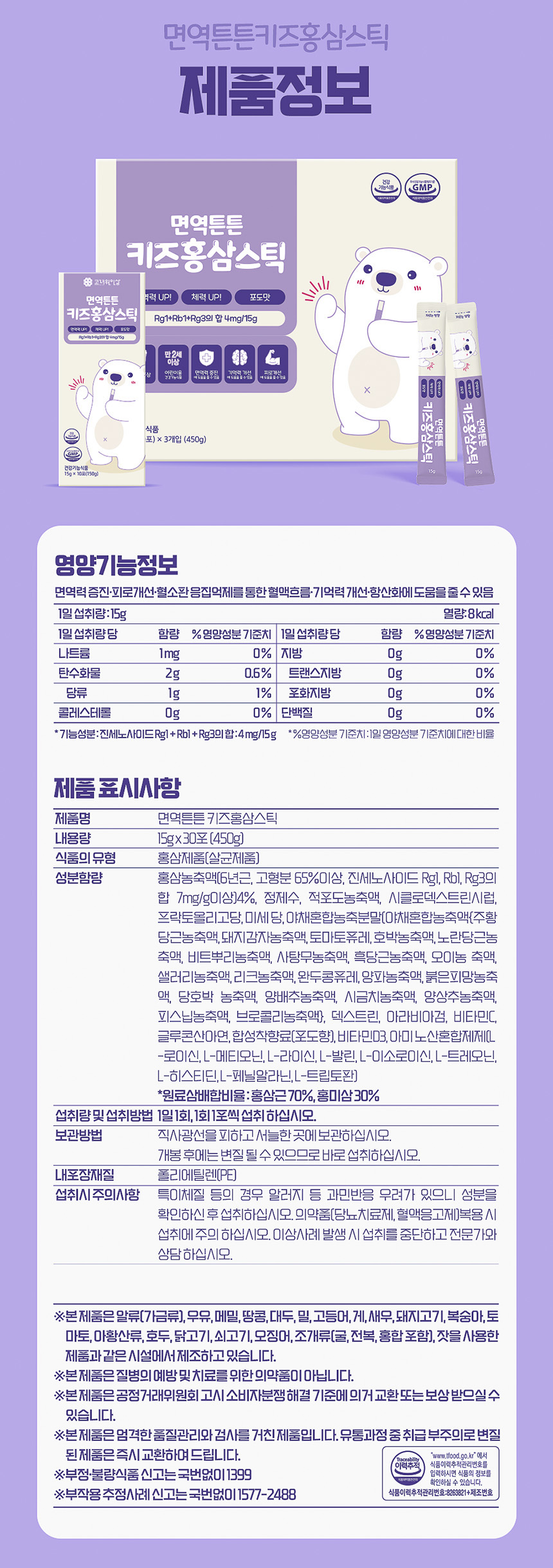 [고려원인삼] 면역튼튼 키즈홍삼스틱 15g x 30포 + 쇼핑백