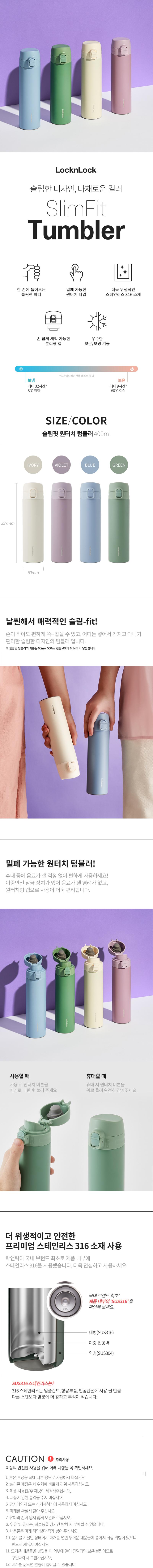 [락앤락] 데일리 슬림핏 원터치 텀블러 400ml_색상 택1