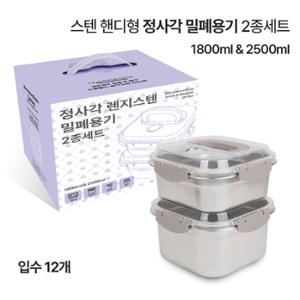 밀양도자기 스텐사각 밀폐 밧드 1종 (2PCS) 4.2L