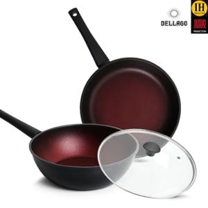 [DELLAGO] 델라고 와인 인덕션(IH)겸용 프라이팬 3종세트 (프라이팬28cm+궁중팬28cm+유리뚜껑 28cm)
