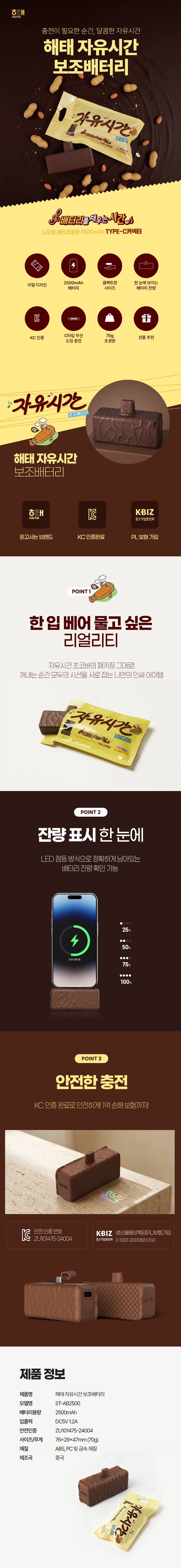 자유시간 2500mAh 보조배터리 ST-AB2500